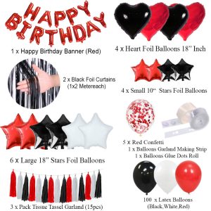 Happy Birthday Decoration Set (Black, Red & White)