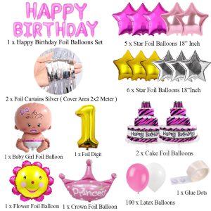 Happy Birthday Foil Balloons Decoration Set (Pink)