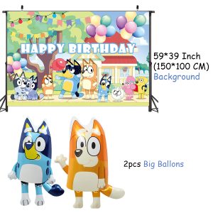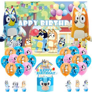 Bluey Birthday Decorations, Bluey Birthday Party Supplies Include Backdrop, Balloons, Foil Balloons, Cake Toppers,Cupcake Toppers for Party Decorations