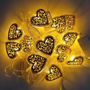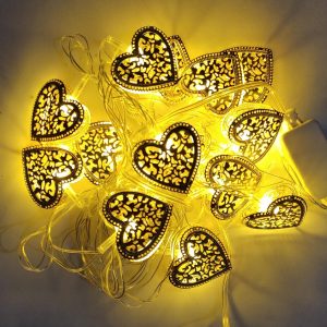 Metal Hearts Shape Golden Led Light 12′ Feet – 220 V Plug operated
