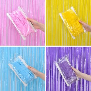 Macron Pastel Color Foil Backdrop Curtains – Set of 2 Pcs