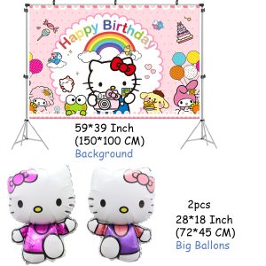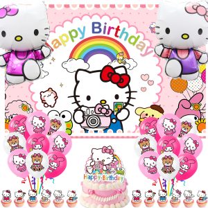 Hello Kitty Birthday Decorations, Hello Kitty Birthday Party Supplies Include Backdrop, Balloons, Foil Balloons, Cake Toppers,Cupcake Toppers for Hello Kitty Party Decorations