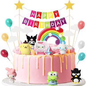Rainbow Hello Kitty Cake Topper Banner Hello Kitty Birthday Party Cake Decorations Supplies Set