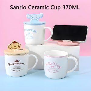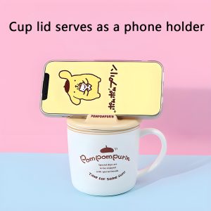 Sanrio Ceramic Mug with Lid Bracket, Hello Kitty Large Coffee Cup For Tea, Espresso, Cocoa | Holds 12.68 Ounces