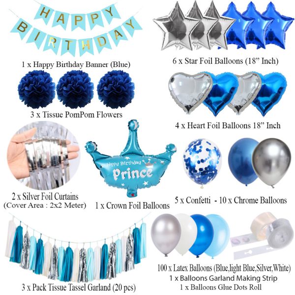 Birthday Decoration Set (Blue, White and Silver)