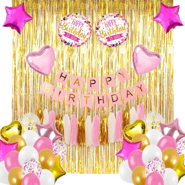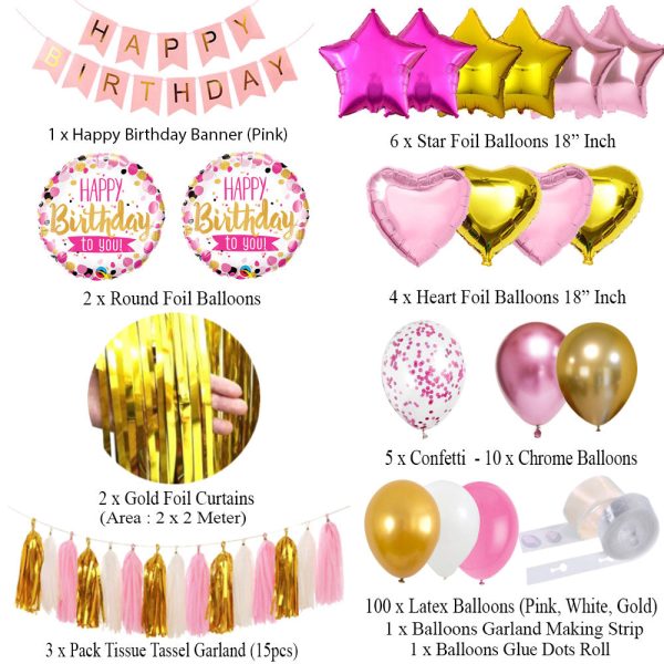 Home All Events Birthday Decoration Set (Pink, White and Gold)