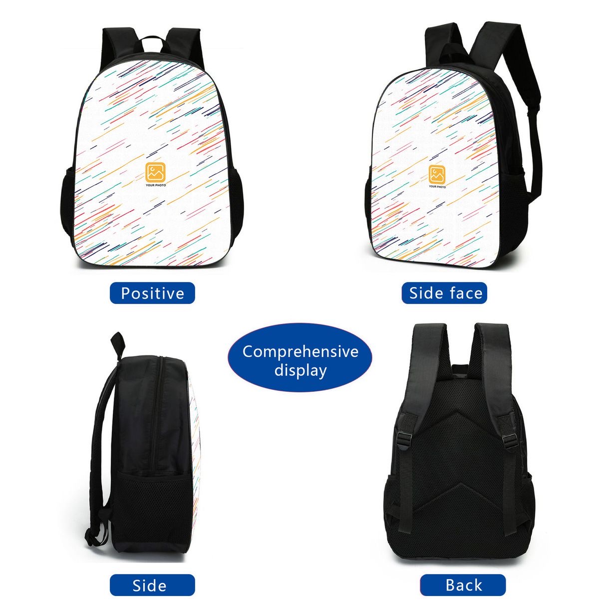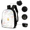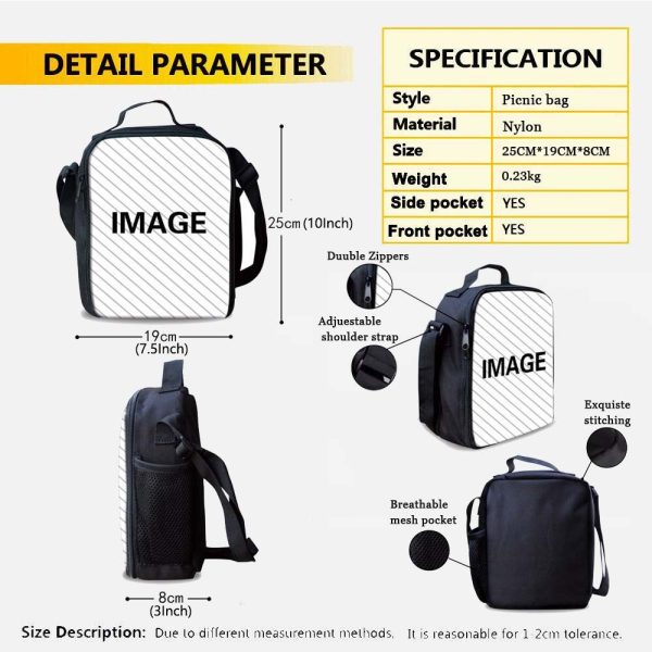 BACKPACK, SHOULDER BAG, PENCIL CASE: The backpack has a main compartment for books, folders, binders, tablets, & notebooks, 2 side mesh nylon pockets, & a locker loop top handle. It features padded adjustable straps w/pp web reinforcement for added strength, comfort & fit. Backpack:Measures 16.5” x 11.4” x 5.12”.Shoulder Bag:Measures 7.5” x 10” x 3”