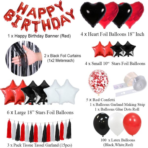 Home All Events Happy Birthday Decoration Set (Black, Red & White)