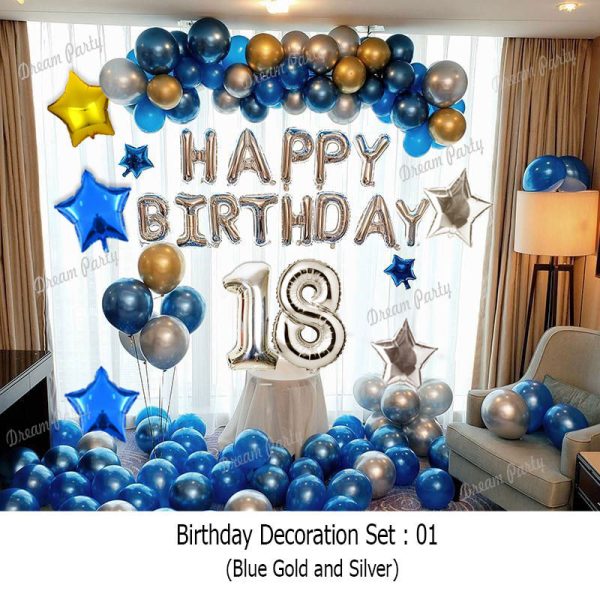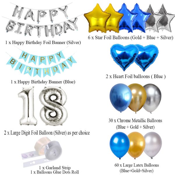 Home All Events Happy Birthday Decoration Set (Blue Gold Silver)