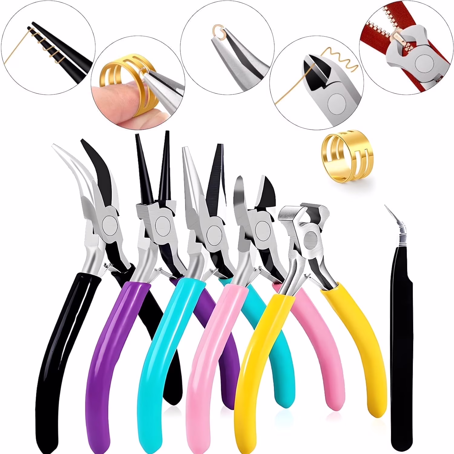jQMUHLC 5Pcs Jewelry Pliers Set Jewelry Making Pliers Tools Includes Needle Nose Chain Nose Round Bent Pliers Wire Cutter for DIY Craft Jewelry