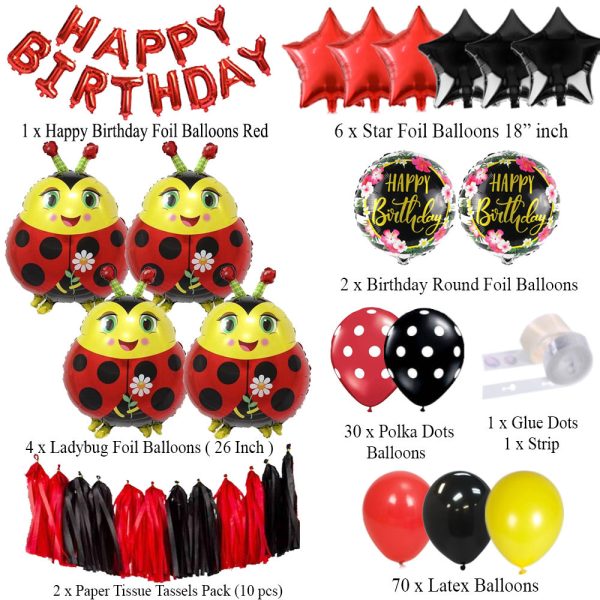 Ladybug Theme Birthday Party Decorations Full Set of Balloons & Items