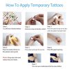 - Easy to use: Remove clear sheet, place tattoo on clean&dry skin, wet the temp tattoo with water and wait for 10 seconds, remove cover paper and wait tattoo to dry.