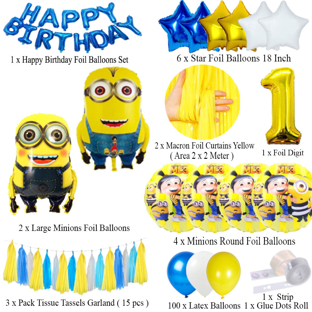 Minions Theme Birthday Party Decorations Full Set of Balloons & Items