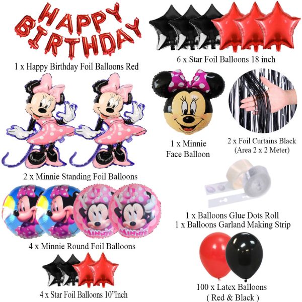 Home Theme Foil Balloons Minnie Mouse Theme Birthday Party Decorations Full Set of Balloons & Items