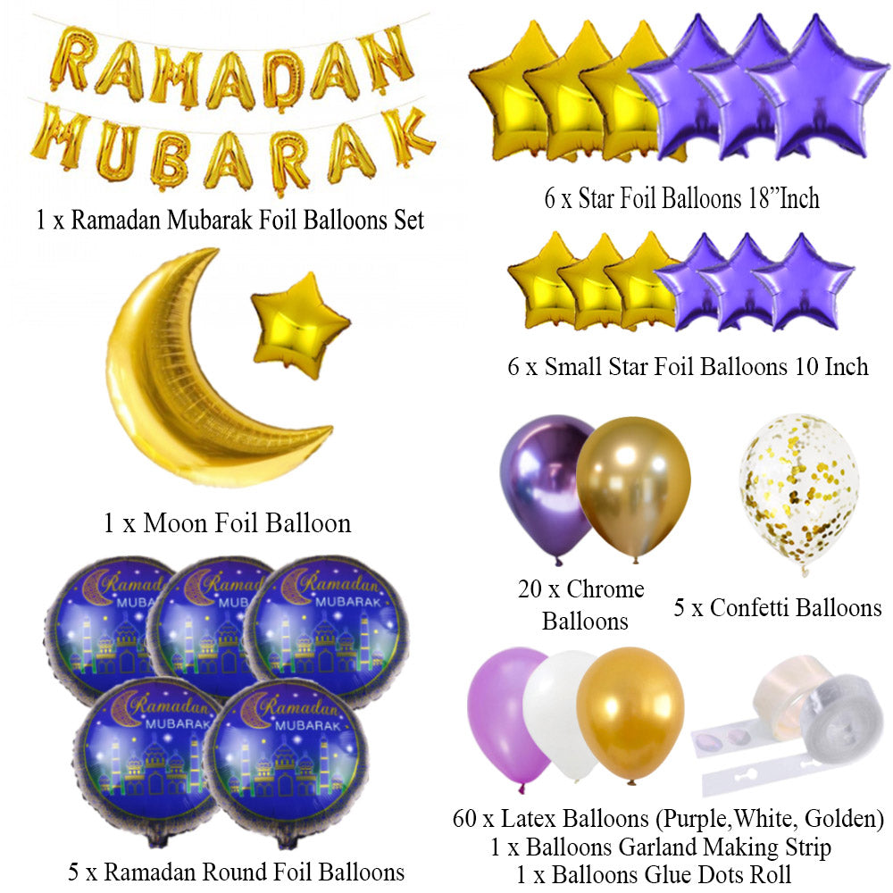 ➣ Ramadan Mubarak Decorations Theme Balloons Set